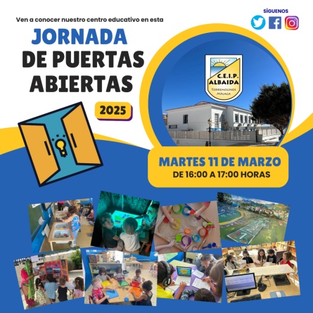 El próximo martes 11 de marzo de 2025, en horario de 16:00 a 17:00 horas, abriremos las puertas a todas aquellas familias que deseen conocer nuestro colegio y nuestro proyecto educativo.