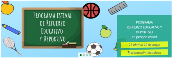 Se presenta un nuevo Programa de Refuerzo Educativo y Deportivo en periodo estival (quincenas de julio). A continuación os presentamos un documento PDF con resumen de la información necesaria y el enlace a la página web (pulsando sobre la imagen).